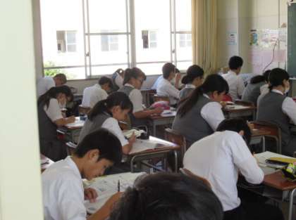 5限1.2年生が文化祭の取り組みをする中、3年生では、明日の大阪市統一テストに向けて、自主学習に取り組みました。3年生にとっては、大切なテストでもあり、それぞれに一生懸命学習していました。
