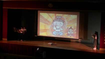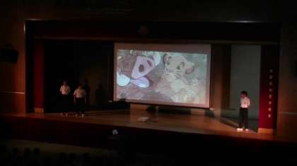 1年生の「紙芝居」では、学年の代表として「桃太郎」と「ライオンキング」を発表しました。
