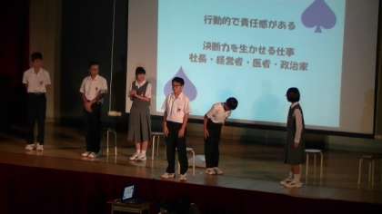 2年生の劇では、1年間の学習を振り返りました。様々な体験活動を通して成長していく様子を表現しました。