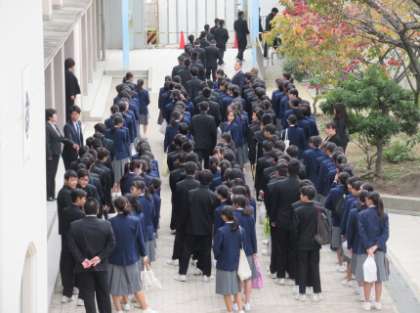 本校創立70周年記念式典を午前10時から体育館で行いました。城東区長様をはじめ地域各団体のご代表の皆様、本校OB・OGの方々と校区小学校の校長先生方、歴代の校長先生方、全校生徒とPTA実行委員の方々にご臨席いただく中で滞りなく式を進行することができました。ありがとうございました。