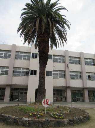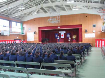 また、体育館の壁には、今から3年前の3年生が製作した校歌の木彫レリーフを掲げました。