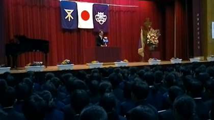 学校長は式辞で「新入生の皆さん、入学おめでとう。本校の校訓のひとつ”勤勉”とは学力を向上させることです。皆さんは将来の大きな夢の実現のために、一生懸命勉強することが大切。知識は将来を感性豊かに生きるためのエネルギーです。」と新入生を激励しました。