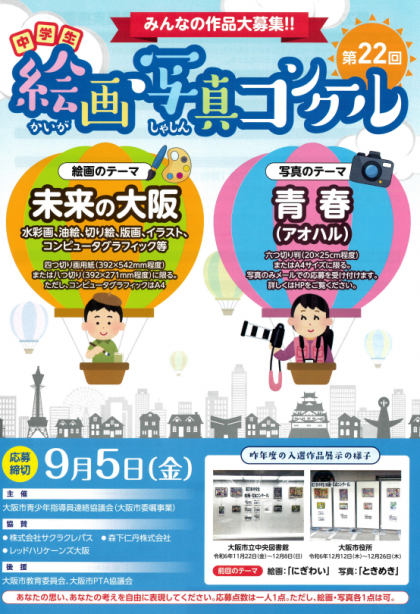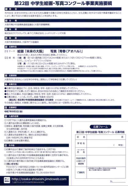 第22回中学生絵画・写真コンクールのお知らせをいたします。