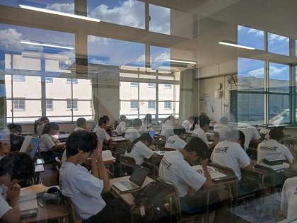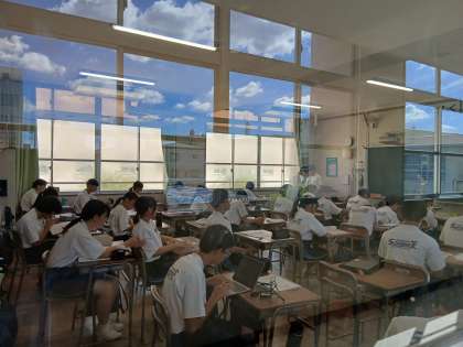 今日は、3年生のチャレンジテストの日です。1限目はアンケートに答え、早く終わった人は自習をしていました。