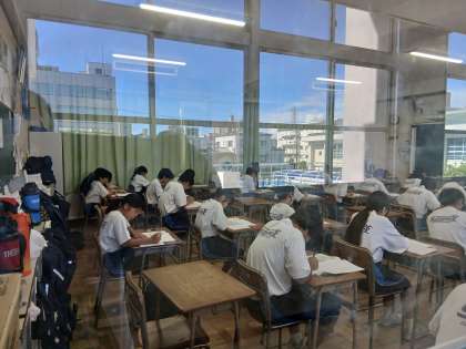 チャレンジテストが終わりました。最後の英語もしっかりと問題に取り組んでいました。いい結果がでるといいですね。