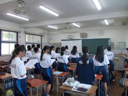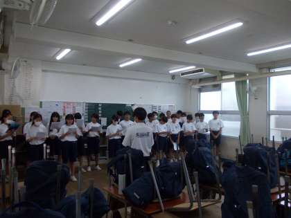2年生は合唱コンクールの歌の練習に取り組んでいました。廊下にも皆さんのいい声が響いていました。更に向上するように、しっかりと練習に励んでください。