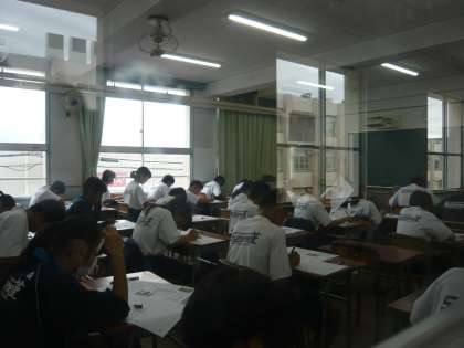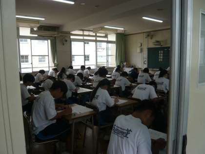 本日から2日間に渡り、中間テストが行われます。1限目の社会がスタートです。各学年、しっかりと問題に取り組んでいます。