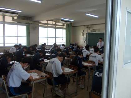 本日、3年生は大阪市英語力調査(GTEC)に取りくんでいます。英語の4技能、リーディング・ライティング・リスニング・スピーキングの力をはかる大切なテストです。1限目からしっかりと取り組めています。今日は、6時間中の3時間英語のテストが行われます。頑張ってください!