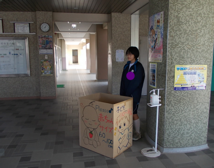 現生徒会役員の方が、古着の回収をしてくれていました。今日が最終日です。役員の方より、「たくさんご協力いただき、ありがとうございました。」とのお声をいただきました。