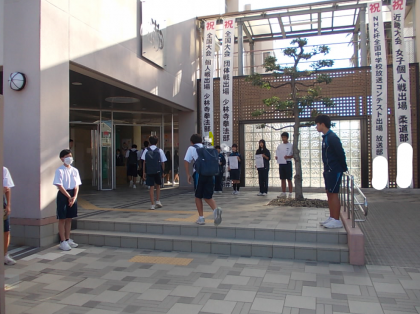 朝の正門からはとても元気な声が聞こえてきました。