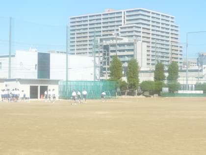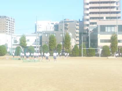 グラウンドでは、保健体育科の授業が行われていました。走り幅跳び、走り高跳びの1年生の授業が行われていました。パフォーマンスの合間に、とても歓声が聞こえてきました。