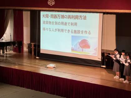 2年生の発表「校外学習のまとめ」万博見学の発表を行いました。