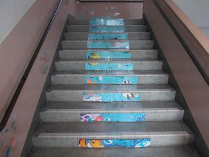 ちぎり絵「海と魚」・「スマイル列車」です。