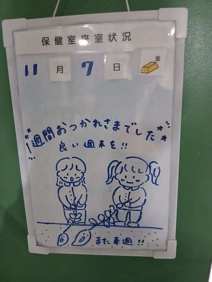 11月の1周目も終わりました。いつもみなさんの健康に気遣いをしていただいている保健室からの今週最後のメッセージです。