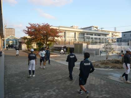 今日も放課後は、部活動が盛んに行われていました。グラウンドは午前中の雨のため、使用できず、工夫しながら活動をしていました。