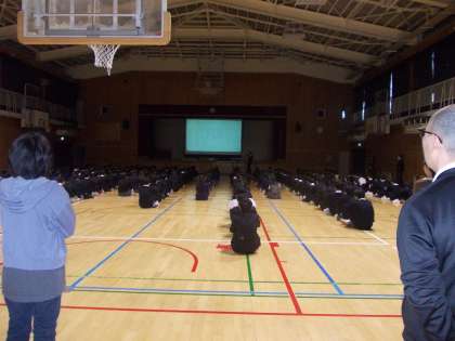 本日は、3年生の学年集会の日でした。今日は、校長先生からのお話でした。人権週間の中、人権を意識する内容でした。面接時の質問の中に、気になる質問(人権を傷つけるような内容)を受けた時の対応の仕方など、大切なお話でした。