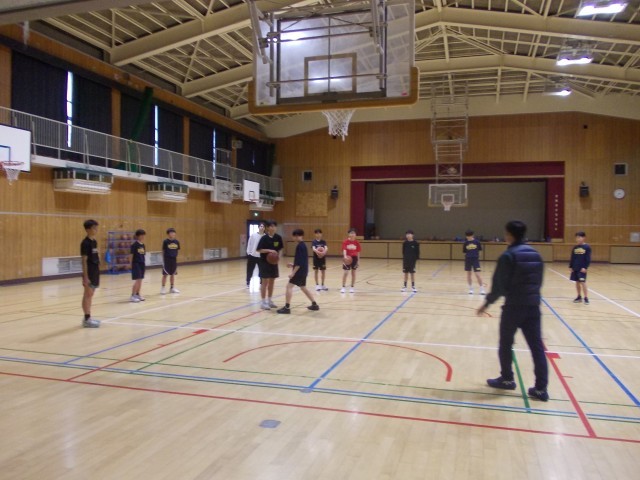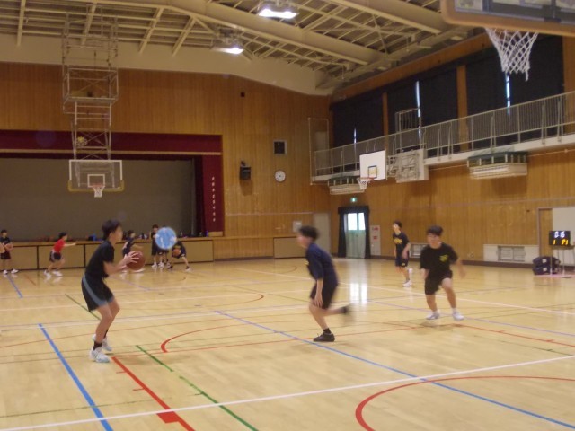 午後から体育館では、男子バスケットボール部が練習を行っています。顧問の先生の指導を聞き、すぐに実践をしていました!がんばっています、バスケットボール部!