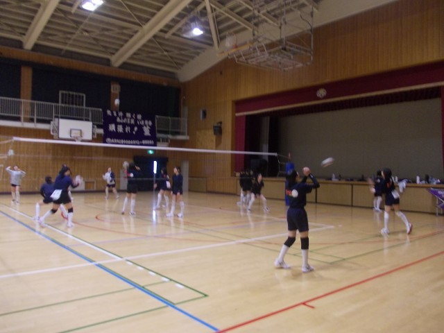 体育館では、バレーボール部とバスケットボール部がコートを共有し、練習に励んでいます!