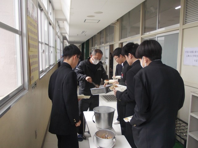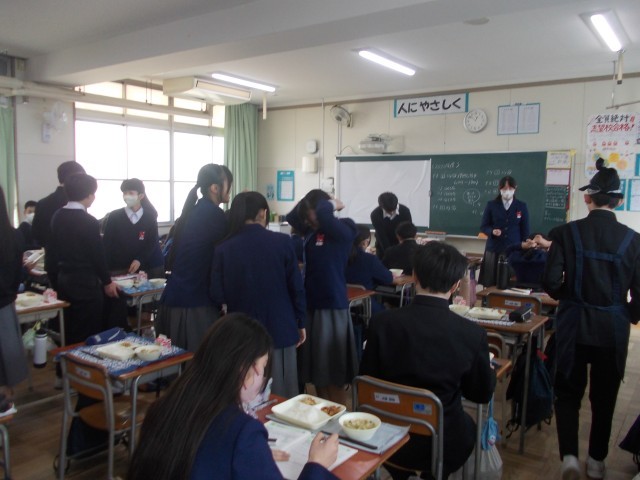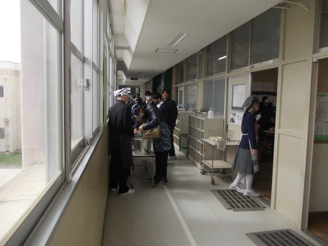 3年生の給食時の配膳の様子です。中学校で給食を食べるのもあと数日ですね…。給食当番と共に先生も配膳をしてくれています。ありがとうございます。