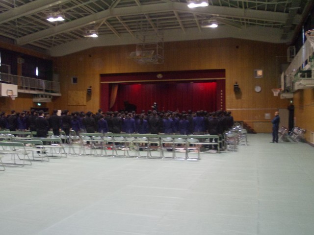1限目、卒業式の学年練習が行われています。3年生のみで行う最後の練習です。このあと、2限・3限目は卒業式予行を行い、明日の本番を迎えます。起立・礼・着席の動作確認や証書授与の練習を行いました。明日の担任の先生からの呼名に対してしっかりと返事をお願いします。