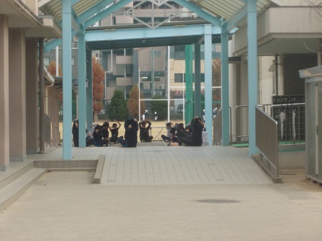3年生のフロアーより外を覗くと、水泳部のみなさんが頑張って部活に取り組んでいました。1・2年生も頑張っています!