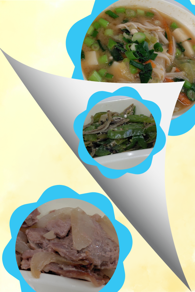 今日の給食は、豚肉の甘辛焼き、とうふのみそ汁、じゃこピーマン、ごはん、牛乳 でした。