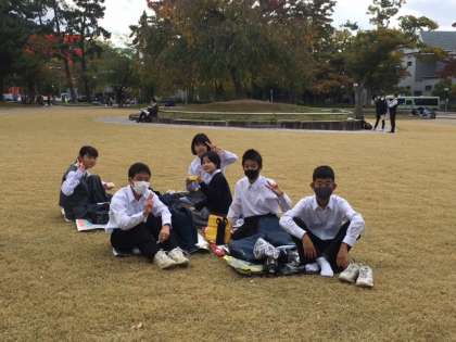校外学習では、班活動を中心ということで、班長を中心に各自が役割分担を責任をもって行っています。