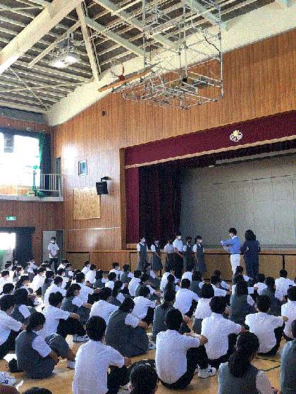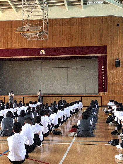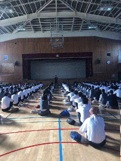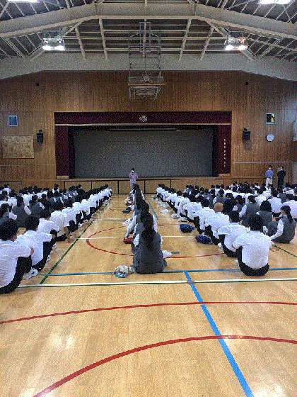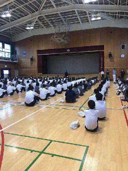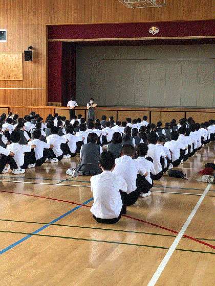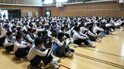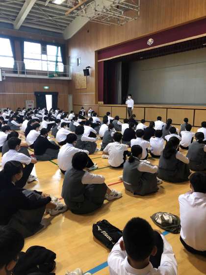 先生からは「中間テストが終わったので、今日以降順次返却されるが、その結果に一喜一憂せずに、勉強を続けることが大切である。毎日コツコツ続けるとテストでも入試でも緊張もせず、力を出すことができる」と話がありました。