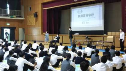 3年生は本日、興国高等学校より校長先生を始め、入試で面接試験を担当しておられる先生、また三名の在校生の方をお招きして面接についての講話をしていただきました。