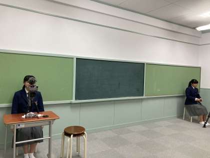 どの生徒も、入試につながる本格的な面接学習とあって、いつもにまして真剣に取り組んでいました。いつもははにかんで、みんなの前ではなかなかやってみようとしない男子生徒が「ドアのノックは中指か人差し指で」と校長先生がお話しされているのを聞いて、実際に中指でノックしてみる姿が微笑ましく感じられました。