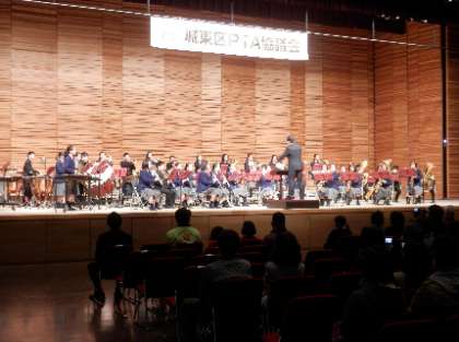 本日は、城東区役所、区民ホールに於いて、城東区PTA協議会フェスタが開催されました。午前10時からのオープニングでは、本校の吹奏楽部がファンファーレを演奏し、開会をお祝いするかのように続いて4曲演奏しました。締めくくりは、いきものがかりの「ありがとう」。日頃支えていただいている方々へ、感謝の気持ちを込めて演奏しました。本日もたくさんの保護者の方々が来場され応援していただきました。ありがとうございました。 -