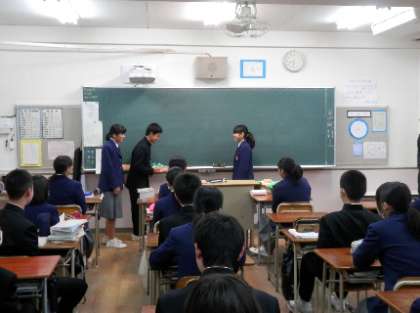 中学校側からは、生徒会が中心となって作成したスマフォの使い方に関する啓発ビデオも鑑賞してもらったり、中学校の紹介を冊子やクイズを取り入れて紹介しました。