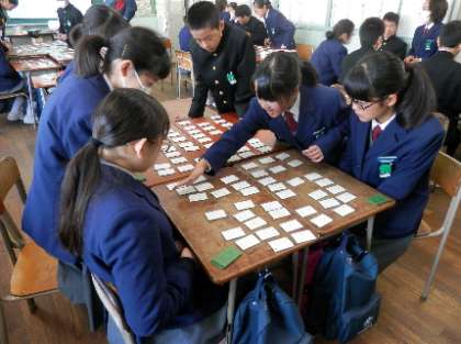 1年生の国語の授業では、百人一首大会に向けての取り組みが始まっています。