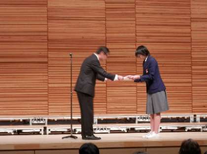 家庭科部では、作品を出展したことで、女子剣道部へは、全国大会へ出場したことで、吹奏楽部では、本年度の活動に対してなど、それぞれ内容の異なる表彰状をいただきました。それぞれの頑張りが認められるということは、大変うれしいことです。菫中学校の生徒として、胸を張ってください。 -