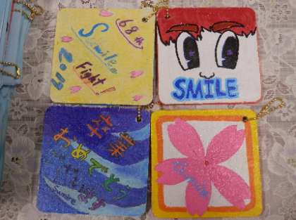 在校生が作成した卒業記念品とは、・・・・。すべて手作りです。いろいろな図柄がありました。これが、その一部です。