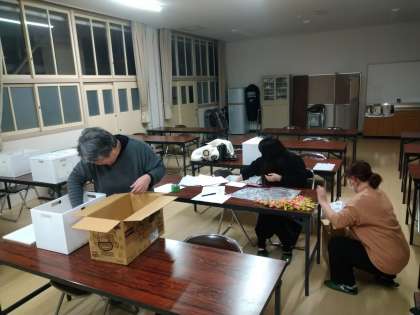 本日の放課後、PTA役員のみなさまが、卒業生への胸花を作ってくださり、その仕分けをしてくださいました。とてもきれいな胸花でした。「ありがとうございました。」3年生のみなさん楽しみにしておいてください。