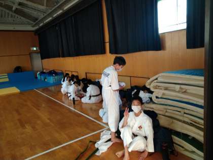 格技室は、柔道部と少林寺拳法部が活動をしていました。休憩をきちんと取りながら、練習に励んでいます。
