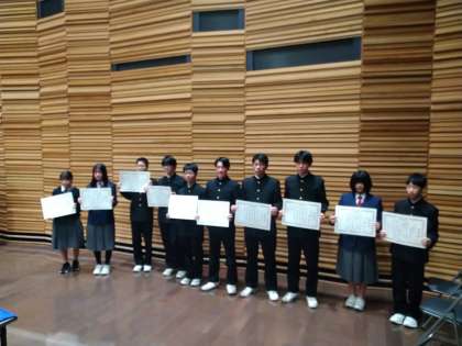 文化、スポーツ等々で、全国レベルに値する成績を残された方々の表彰もありました。本校は、城東区内の中学校の中でも特に多く、受賞者の半数を占めておりました。「おめでとうございます。」自信にし、更なる成長を期待しています!