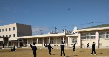 今日は、先週とは違い、少し寒さも和らいだ一日でした。グラウンドではたくさんの人が元気にボール遊びや日なたでおしゃべりをしていました。赤・緑・青と各学年のボールが飛び交っていました。きちんと時間を守って、ボールを片付けていました!