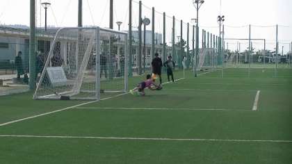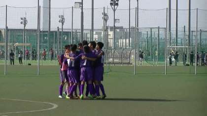 最後まで得点が入らず、1−1の同点でPK戦へ突入。キーパーのナイスキャッチ!2本連続相手のPKを阻止。本校が4本目を決めて、喜びのあまり全員がピッチに集まっていました。