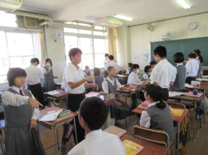 本日行われた2年生の英語の授業を紹介します。「道案内」をテーマに2人1組でジェスチャー入りで表現し、英語での会話を楽しみました。