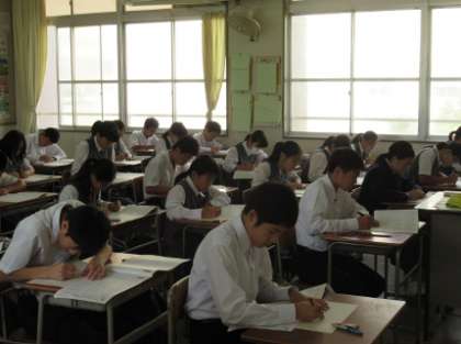 本日、希望者による漢字検定試験を行いました。全学年生徒を対象とした希望者によって実施したもので、全員で80名が挑戦しました。2級4名、準2級10名、3級38名、4級20名、5級8名がそれぞれ真剣に問題に取り組んでいました。 -
