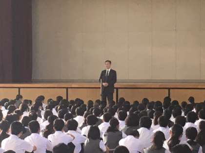 そして、本日は大阪府立大手前高等学校の松田校長先生にお越しいただき、進路選択について大変貴重なお話をお伺いしました。松田先生は、学力の基本は「学校の授業を大切にする」「教科書の基礎・基本をしっかり深く理解する」ことにある、また、高校・大学は社会に出るための通過点に過ぎないので、決して学力で判断せずに自分で志望校へ足を運び雰囲気を感じる、ことが大切ですとお話されました。社会に出てからの人生を見据えた長期的な視点を持つことの重要性を話されたのだと思います。松田校長先生、ご多忙にもかかわらず本当にありがとうございました。