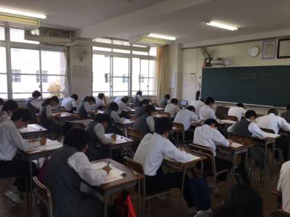 本日は休日ですが、希望者を対象に国語科で漢字検定試験を実施しています。5級から2級まで約90名の生徒が受験しました。ちなみに2級の難易度は高校卒業・大学・一般程度だそうです。皆さんの合格を心から祈っています。頑張れ菫中生!