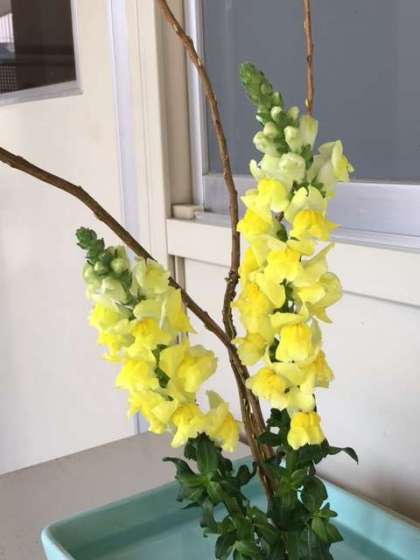 日増しに寒くなるこの頃ですが、今日は小春日和の温かさに包まれています。生けていただいた花の黄色が天気とぴったり合います。いつもありがとうございます。