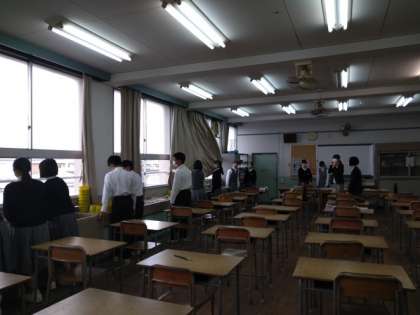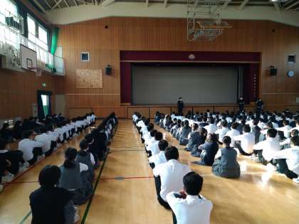 まず、米田先生からは、明日の出前授業(高校の先生方による授業体験)に向け、服装の面を整えましょう。とのお話がありました。特に名札の忘れ物が今日は、気になりました。家を出る前にもう一度、確認をしましょう。