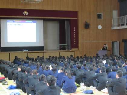 本日は、校区三小学校の6年生が6時間目に来校し、中学校の教室で中学校の授業を体験しました。小学校の学級ごとに、国語、社会、数学、理科、英語の授業を8教室で行いました。各教科とも小学生用に授業内容を工夫しましたが、中学校の授業の雰囲気を少しは味わってもらえたでしょうか。