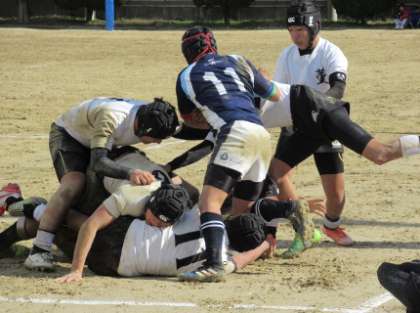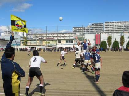大阪市中学校秋季総合体育大会 ラグビーの部の決勝戦が、本校のグランドで開催されました。昨日の雨の影響もあり、少しグランドが柔らかかったものの、晴天の中、10時30分キックオフで試合が始まりました。対戦相手は、宿敵のライバル、文の里中学校。 前半から押し気味に試合を展開し、見事に大会二連覇を成し遂げました。両校とも3年生にとって、中学校生活最終戦となるこの試合には、かなりの思い入れがあり、熱気のこもった試合となりました。 -