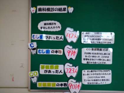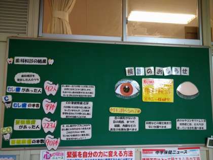 今回の保健室の掲示板は、歯科検診を終えての「結果」と眼科検診のお知らせです。