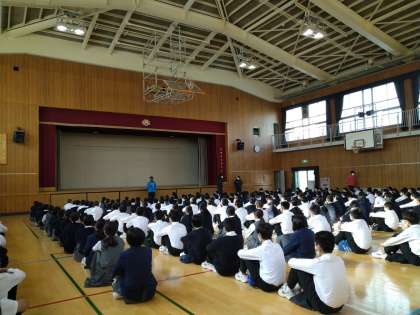昨日27日6時間目、3年生は体育館制服着こなしセミナーを行いました。